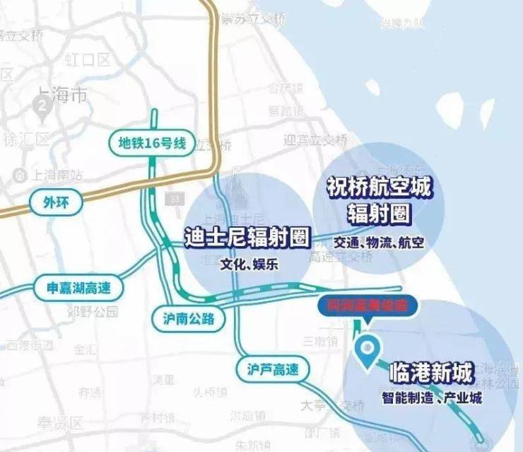 北靠祝桥航空城、西邻迪士尼度假区、东临临港新城,